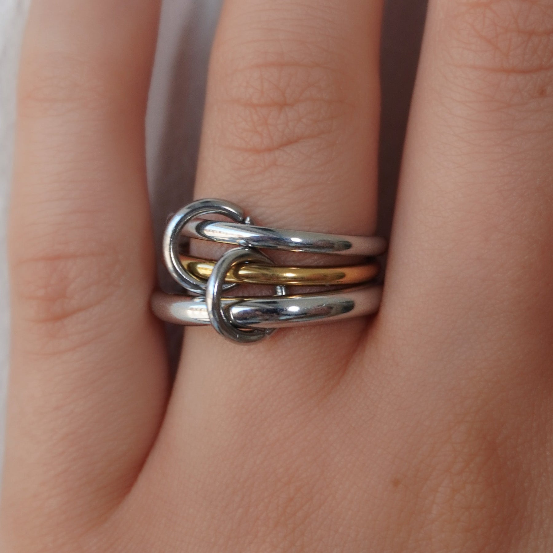 Have your diva moment with the Cuffed Stacked Ring! A stunning mix of metals and textured bands chain linked for a statement piece that’s both fierce and feminine.