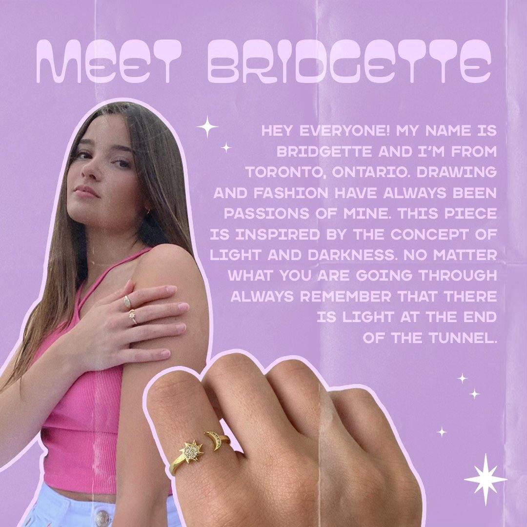 We’ll be obsessed with this baby from dusk to dawn! Designed by Bridgette, this adorable sun and moon ring is guaranteed to add a touch of bling to any outfit you wear.