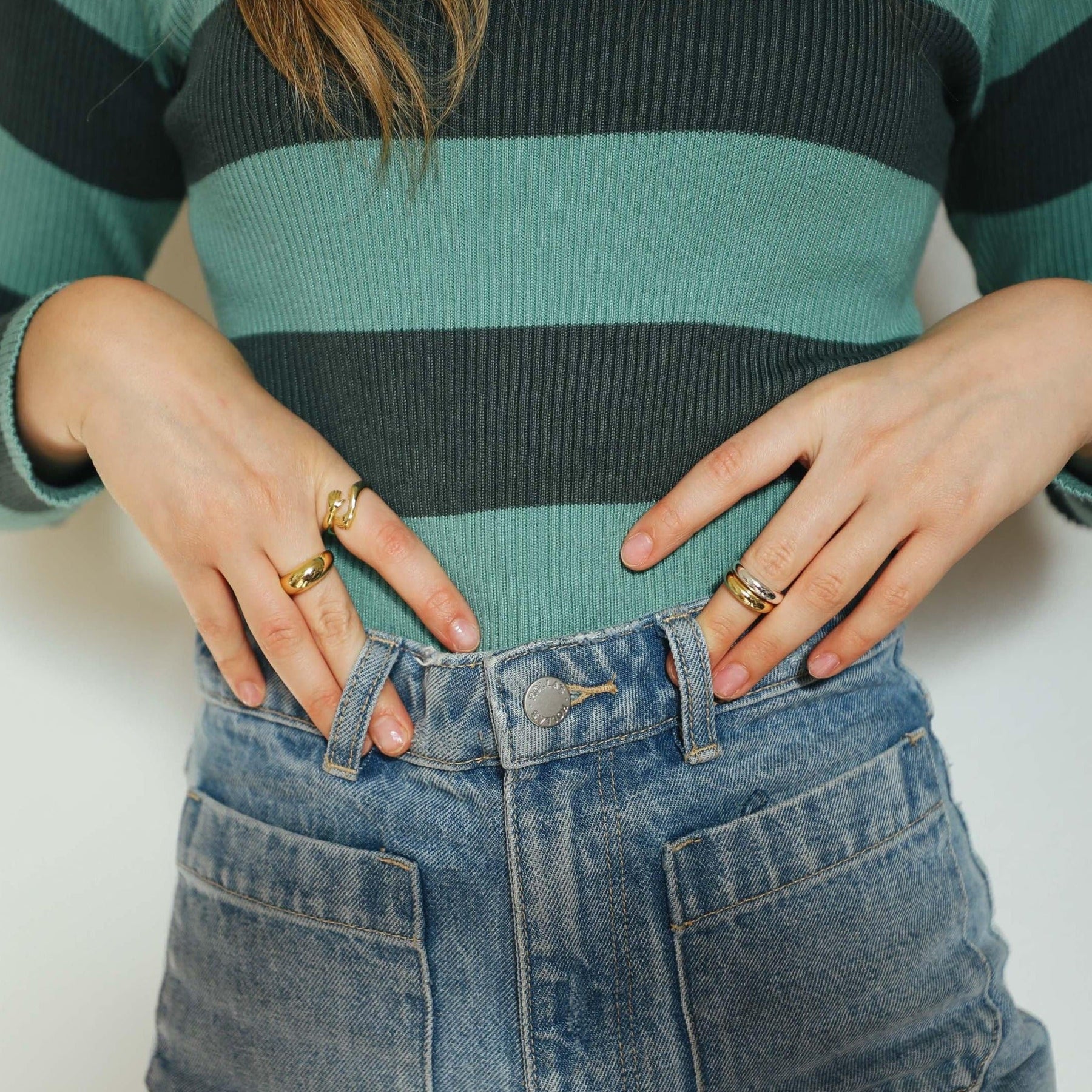 Sleek, minimal, and effortlessly cool — this gold band is your stacking essential. Wear it solo for subtle shine or layer it up for that curated, everyday glam.