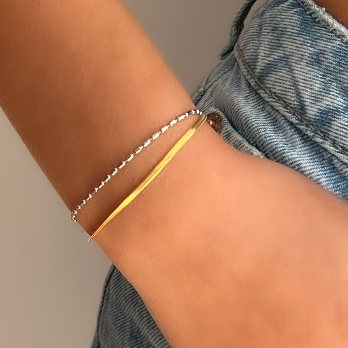 Crafted from durable stainless steel, its eye-catching two-tone design effortlessly blends style and strength. Perfect for mixing and matching, this bracelet brings a playful twist to any outfit while standing up to everyday adventures.